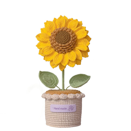 Rotating Crochet Sunflower Bouquet - Handmade Potted Plant Gift